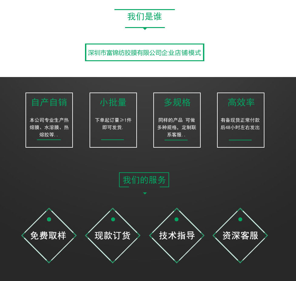 深圳市富錦紡膠膜有限公司創(chuàng)始于2003年8月,是集研發(fā)、生產(chǎn)、銷售為一體,專業(yè)生產(chǎn)包裝用水溶性包裝膜、水溶包裝袋、水溶性防靜電包裝袋,繡花專用膠膜(熱熔膠膜、熱熔膜、繡花膜、熱熔膠)、水溶性薄膜(水溶膜、水溶膠、冷水膜、PVA繡花膜、PVA薄膜、冷水溶膜)、冷水溶錦、冷水溶無紡布,布料金屬粘貼用熱熔燙膠(熱熔背膠、繡花背膠),自動燙膠機燙膜機、氣動熱熔機脫膠機、手壓平板燙畫機等產(chǎn)品為主的實體企業(yè)!案诲\紡 為您著想”是公司樸素的追求,公司先后與國內(nèi)外相關(guān)高等化工院校和科研機構(gòu)建立了長期緊密的合作機制,保證了技術(shù)上的優(yōu)勢。